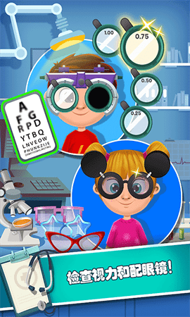 1、玩家需要为近视的病人检查视力,并为他推荐搭配一款时尚很酷炫的眼镜。