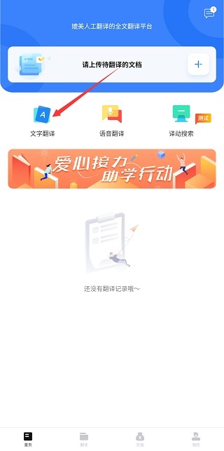 点击“文字翻译”按钮,进入翻译页面后,输入你需要翻译的文字内容。
