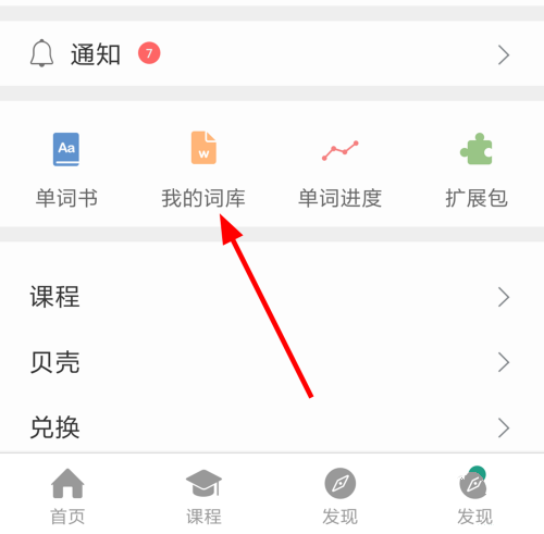 4、接着返回我的页面,点击我的词库选项。
