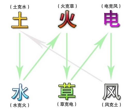游戏里的萌兽五大种族分别是土系、火系、电系、草系和风系。