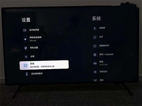 如下图所示,进入电视的设置页面,找到系统点击进入。