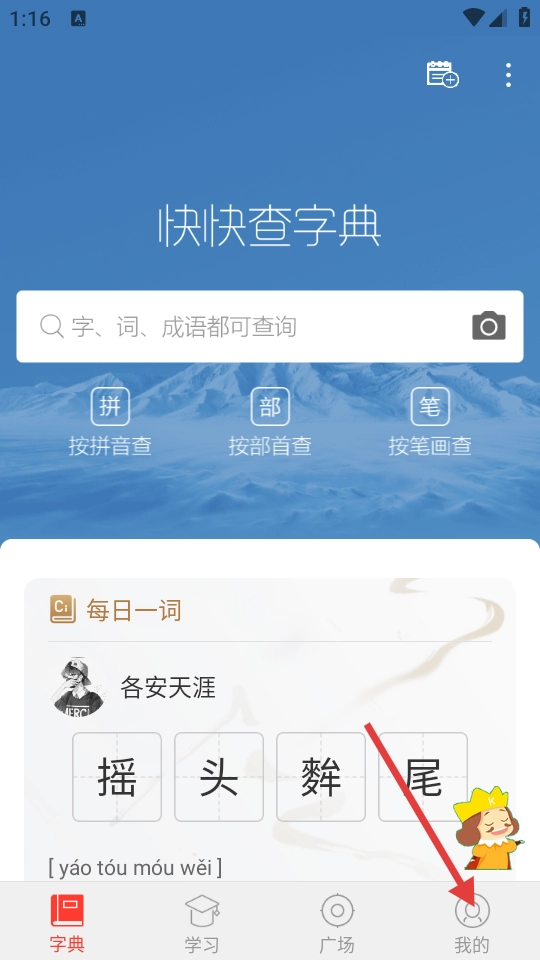1、在字典页面中,点击底部【我的】选项,进入个人页面。