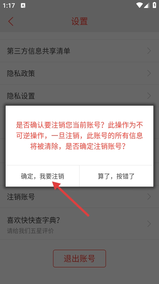 4、在注销确认弹窗中点击【确定,我要注销】按钮,即可完成账号注销操作,此操作不可逆。