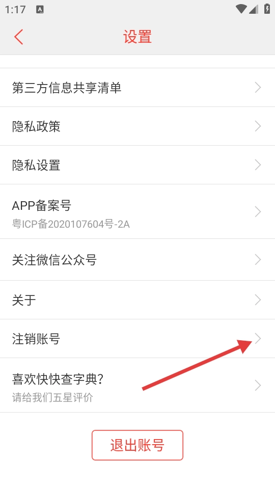 3、在设置页面中,点击【注销账号】选项,触发注销确认弹窗。