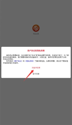 1、初次启动应用时,需阅读并同意用户服务协议及隐私条款,点击确认后进入主界面。