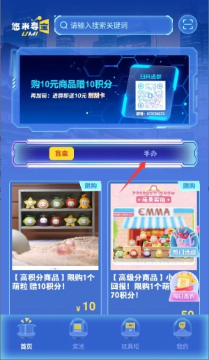 2、在首页导航栏选择手办专区选项,浏览各类动漫周边和限定款模型信息。