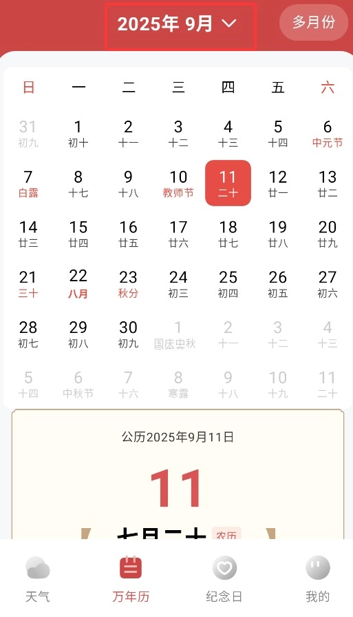 3、通过日历功能,可切换不同年份与月份,并显示对应农历日期。