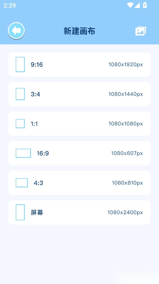 4.然后选择画布尺寸大小后,点击进入下一步操作