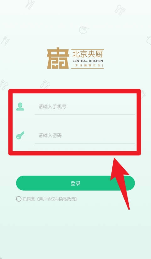 2、于登录界面填写手机号与密码,点击登录按钮后,便能进入系统使用各类餐饮功能。