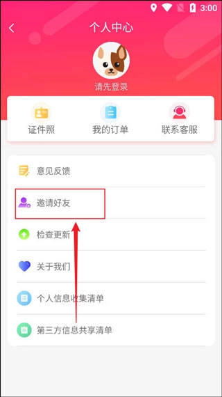2、进入个人中心后,找到并点击【邀请好友】选项,即可获取专属的分享链接。