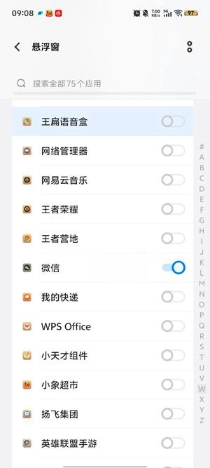 在悬浮窗权限界面找到王扁语音盒,点击。