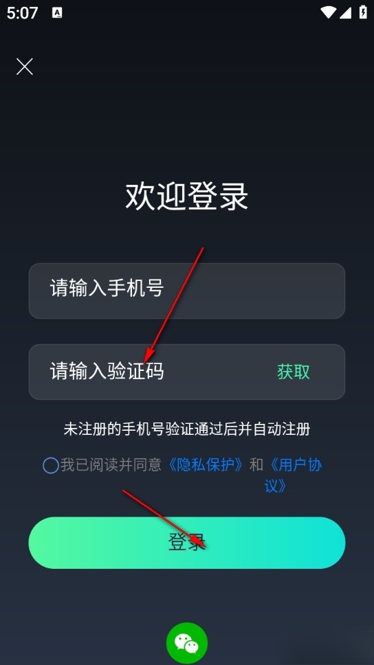 3、输入手机号及验证码点击登录