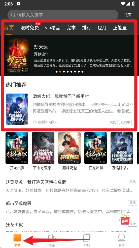 2、在书城栏目里,你能够浏览热门推荐、限时免费、包月书库等不同板块,从中挑选并阅读自己感兴趣的小说。