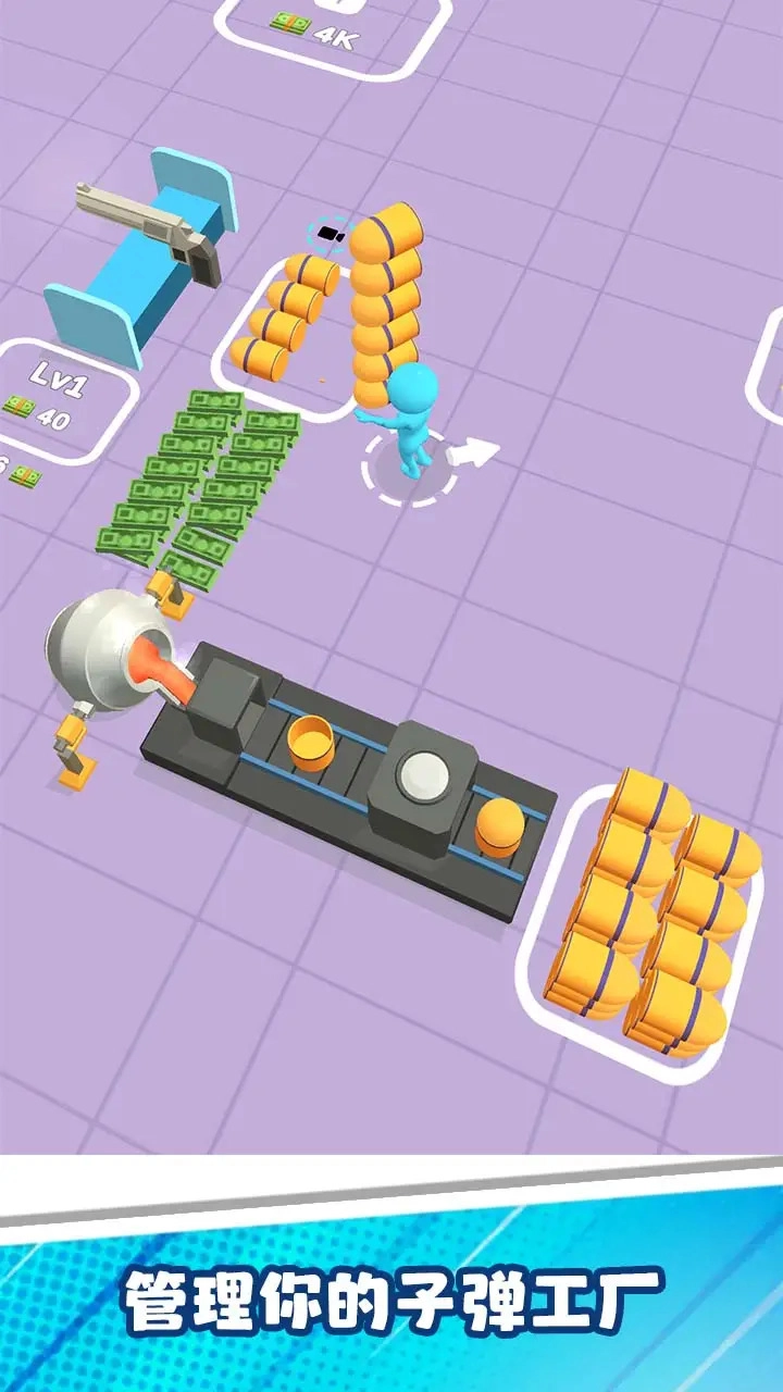 《子弹军工厂》的核心玩法围绕武器生产、武器升级与战斗指挥展开。玩家需在专属军工厂中制造步枪、机枪、狙击枪等各类武器。随着游戏推进,敌人会愈发强大,玩家只有持续升级武器并优化战略,才能赢得胜利。