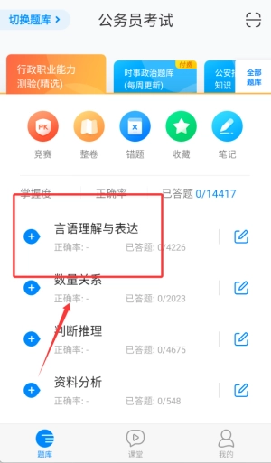 3、公务员刷题专区包含历年真题与模拟试题,可按题型或知识点进行分类练习,巩固应试能力。