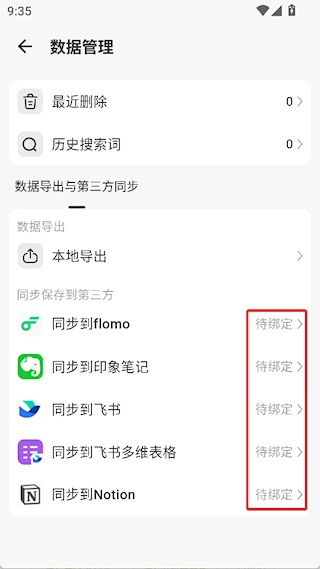 3、能绑定的第三方有notion、flomo、印象笔记、飞书等