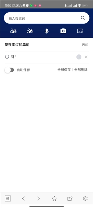 2、找到并点击搜索按钮,在搜索框中输入需要查找的韩语单词。