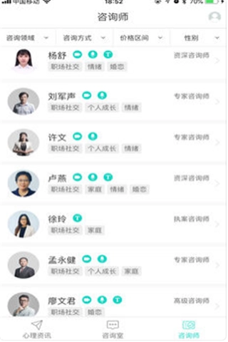 1. 专业心理咨询师团队:聆云心理配备了一支专业的心理咨询师团队,致力于为用户提供高品质的心理咨询服务。