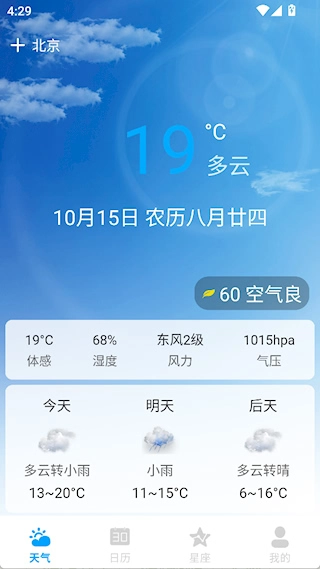 七彩虹天气预报是一款聚焦气象服务与生活辅助功能的应用,可迅速获取当前所在位置的天气信息,提供实时天气状况、短时间内的变化以及长期趋势等多层面的预报内容。其数据来源于权威的气象渠道,包含温度、湿度、风力等多项气象指标,同时还融入了各类生活指数,为人们的日常生活与出行提供值得信赖的参考依据。