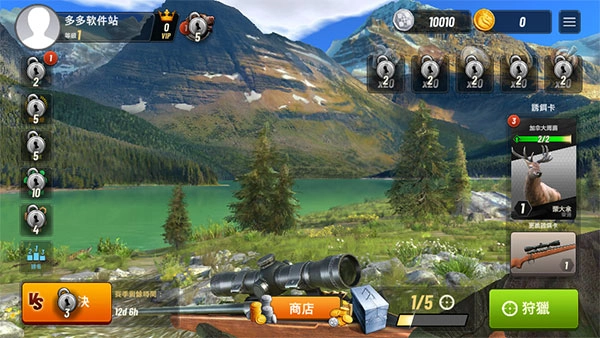1. 沉浸式狩猎体验:游戏运用顶尖的物理引擎与图形渲染技术,精准还原动物的自然行为与场景细节,让玩家真切感受到身处真实狩猎场的氛围。