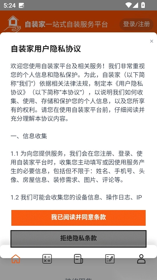 1. 首先打开软件,仔细阅读隐私协议内容,随后点击“我已阅读并同意条款”按钮进入下一步。