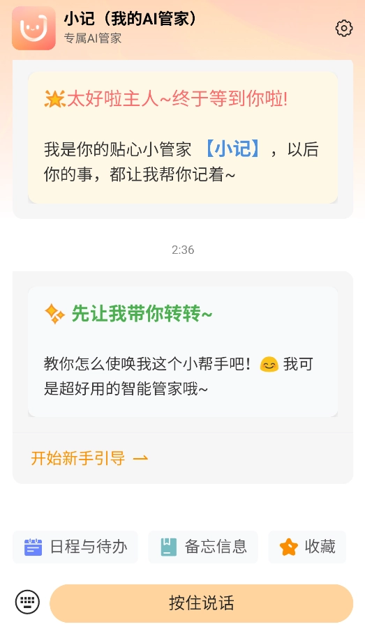 1、启动后,点击“AI引导”按钮,跟随互动教程学习语音/文字记录技巧。