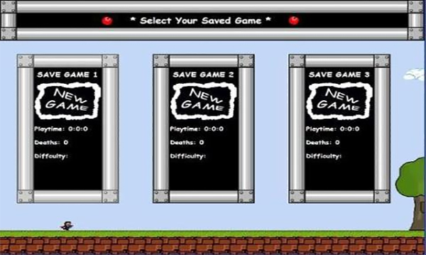 以难度出名的IWBTG! 总共有4种难度: 中等(Medium),难(Hard),超难(Very Hard),和不可能(Impossible[注:看起来是不可能通关,实际上这是给高玩和TAS专门准备的)。 随著玩家选择的难度提升,游戏里的存档点也会跟著减少,到impossible只剩下一个只会出现1/30秒的存档点;玩家必须在那1/30秒内成功的用子弹射到存档点才行(仅限guy)。
