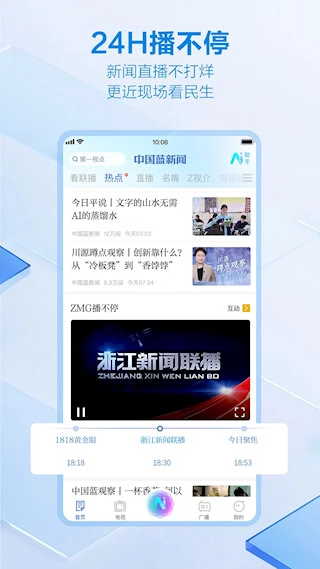中国蓝新闻是浙江广电集团打造的新媒体平台。它全天候不间断地推送国际、国内以及浙江本地的热点新闻,内容覆盖时政、财经、社会、科技、文化、体育、娱乐等诸多领域,让用户能够及时获取最新资讯。此外,平台还提供浙江广电集团旗下多个电视频道与广播频率的实时直播服务,同时也有各类精品栏目的现场直播和点播功能,以满足观众多样化的观看需求。
