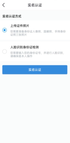 1、用手机号登录后通过拍摄身份证或者上传身份证的方式登录。