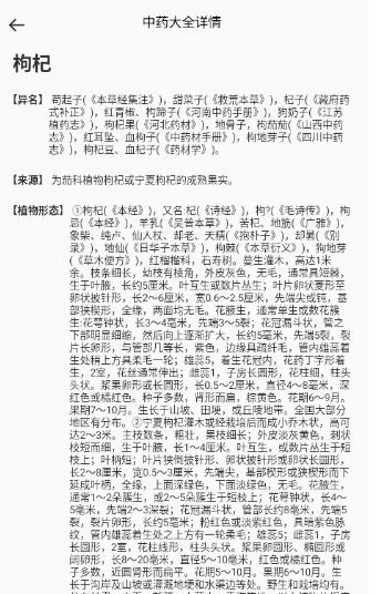 在中药大全功能中可以搜索查询各种中药材的详情信息,学习中药知识。