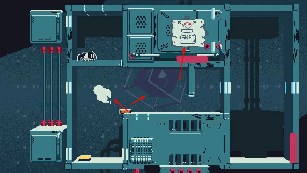 2、遇到标有SHIFT等提示的机关时,触发机关可改变场景内的道具或平台状态,为猫咪前进创造条件。