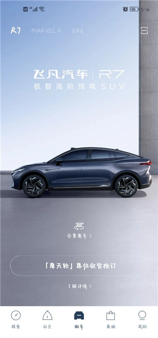 5、360°全景看车,随时随地定制你的专属R7。