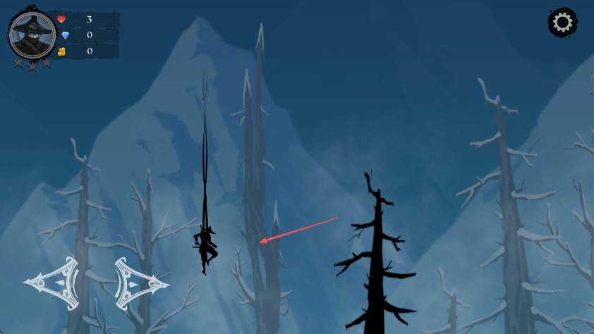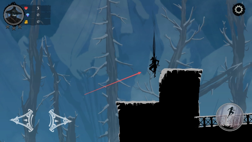 2、遇到需要攀爬的场景时,看准时机点击按键,让角色抓住藤蔓向上攀爬。