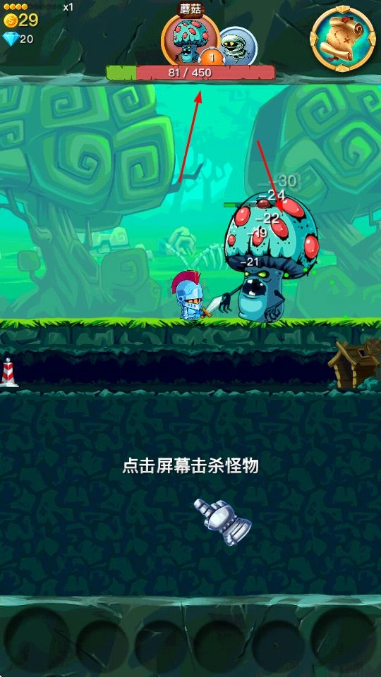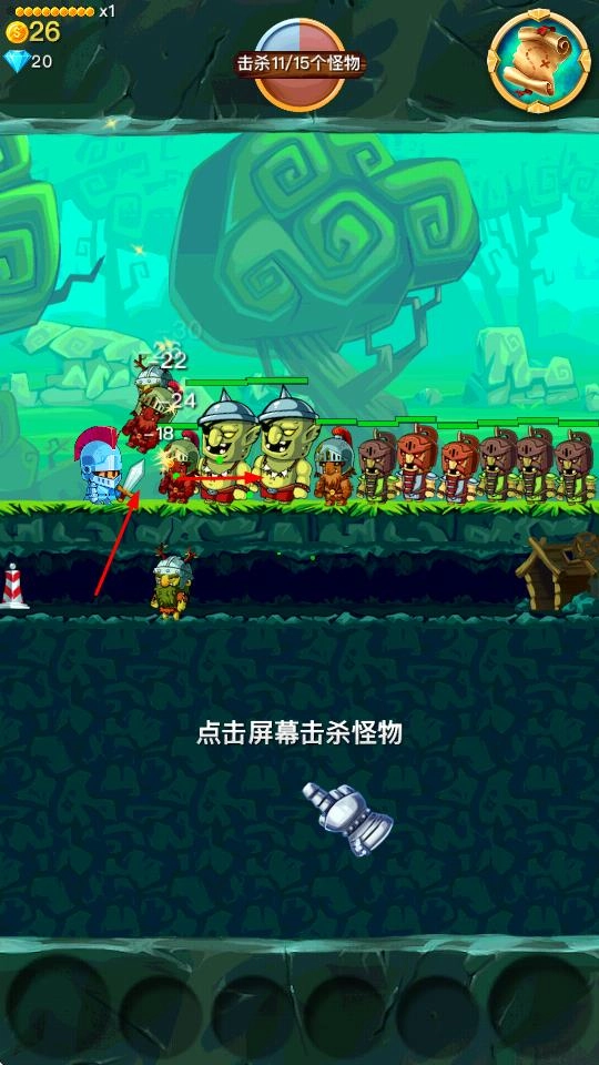 1、点击屏幕击杀怪物,朝着击杀11/15个怪物等目标推进,击败出现的各类敌人。