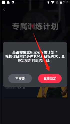 3、然后点击屏幕中间的“重新定制专属计划”;