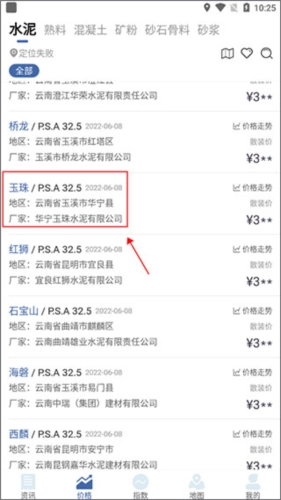 3、根据自己目前的所在位置来选择地区的水泥价格,比如说像玉珠这个地方。