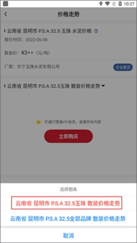 4、然后依据自己的需求选择查看水泥价格图,我这儿就选了第一个了。