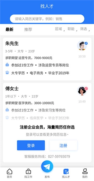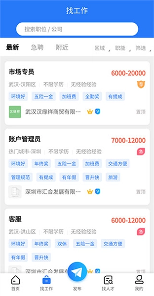 2、专注武汉人才招聘,每天更新上万个岗位和人才。