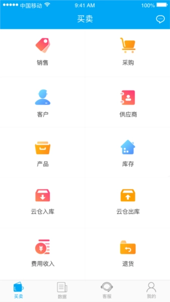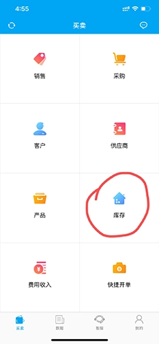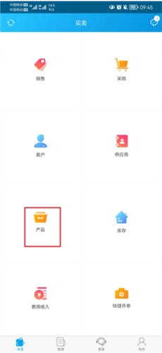 一、打开秒账进销存软件手机版,在买卖界面中点击产品