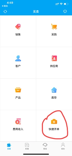 1.首先点击快速开单。