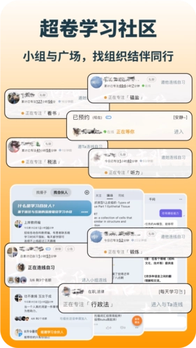约学习搭子一起连麦学习、交流分享,监督对方的专注时间分布及打卡情况,说好的共同进步可不许退缩。