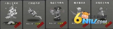 深水湖的BOSS有这些:人鱼公主莉莉、打捞者杰伊、海盗王韦斯利、糊涂蛋派派和深海领主利维。