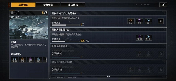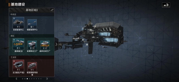 基地建设是提升玩家的主要途径,可以帮助玩家开放新的功能,例如增加各种资源收入效率、船坞生产效率等,玩家可以根据自己的情况选择升级建筑,提升自己的繁荣度。