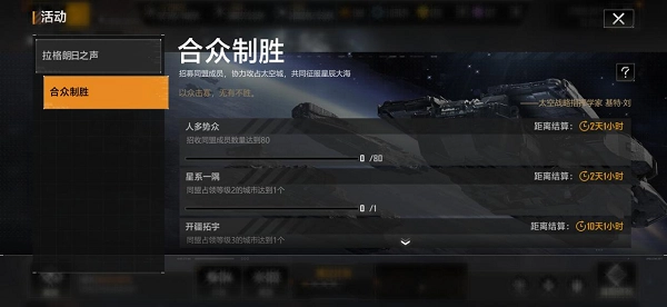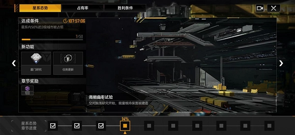 星态势力板块:实际上就是说明星系目前的格局,可以观看具体哪些同盟占有了哪些地方。当前星际态势任务完成时,可领取对应奖励并开启下阶段任务。