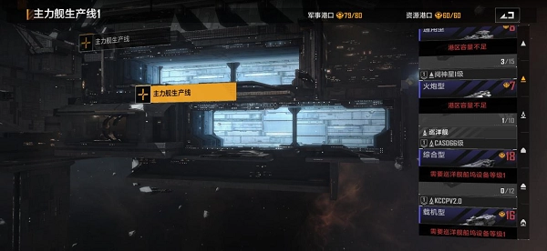 战舰生产额度取决港口的容纳量,军事港口指的就是各种战舰容纳量,而资源港口指的则是工程舰船的容纳量。