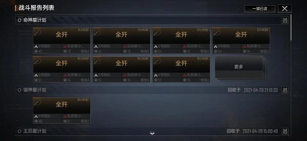 战斗报告:可以获取玩家舰队的战斗详细信息,包括战斗损耗、歼敌数量、获取奖励数量等。