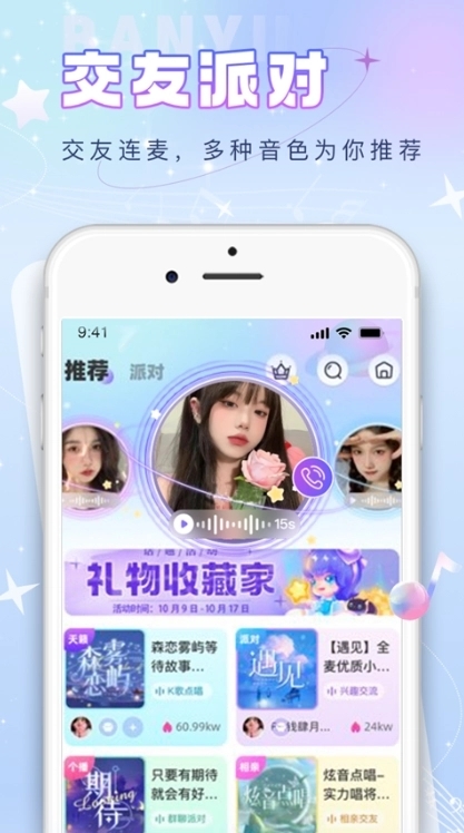 既爱音乐又想找同好?伴音星球满足你!不仅能发现海量热门歌曲、小众音乐,还能靠音乐偏好匹配合拍的人。支持语音连麦分享听歌心得,也能在主题聊天室畅聊兴趣,更有简易创作工具让你分享翻唱、配音作品,音乐与社交两不误,轻松找到懂你的人~