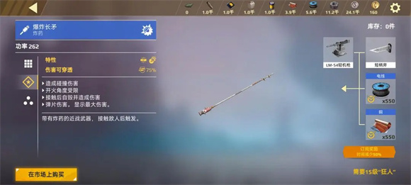 3、爆炸长矛:在创世战车移动版中,存在一种独特的近战武器即“爆炸长矛”,这是一种一旦与敌人碰撞就会造成爆炸伤害而消失的一次性武器。因为几乎接近是自爆的攻击,所以其攻击力非常高。