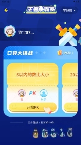 2. 在右上角调整年级,选择PK项目后,轻松一点“开始PK”;