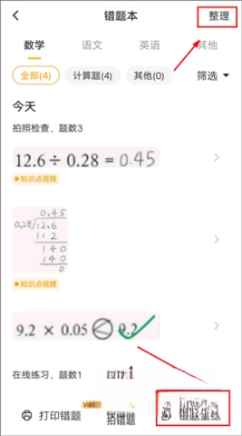 3. 手写答题与口算练习:涵盖学龄前儿童及不同年级小学生的口算题目,答错的题目会自动收录至错题本,方便后续进行针对性复习。